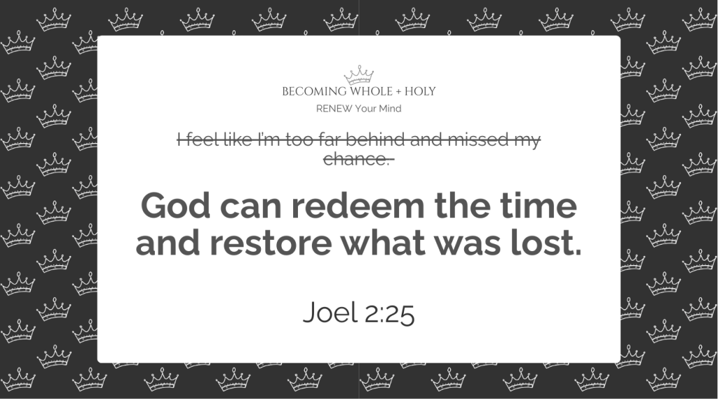 What feels “lost” in my story? What would redemption look like through God’s eyes?