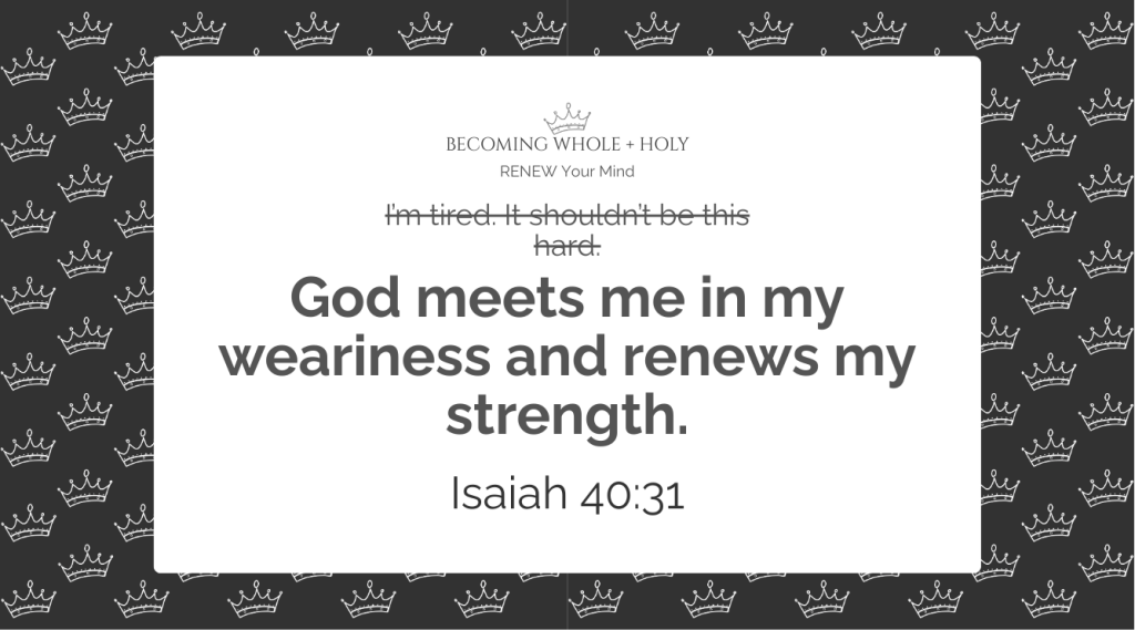 What feels exhausting in this season? What would it look like to let God strengthen me instead of pushing myself harder?